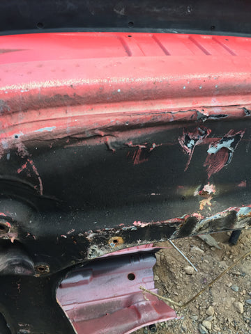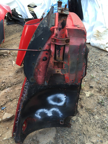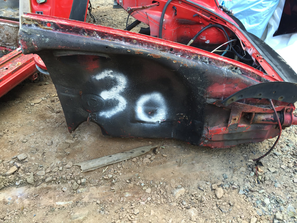 911 Front Apron wheelhouse passenger right body cut mount steering rack good to latch panel on passenger side driver side under battery rotted 1977